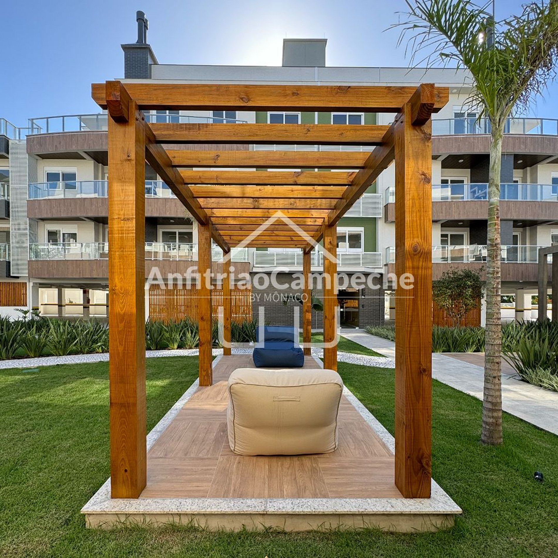 Tudo isso na maior tranquilidade e segurança de um condomínio fechado frente mar. Basta atravessar a rua, seguir por uma deliciosa trilha de natureza nativa e em 300 metros já estará com seu pés nas águas da Praia do Campeche.